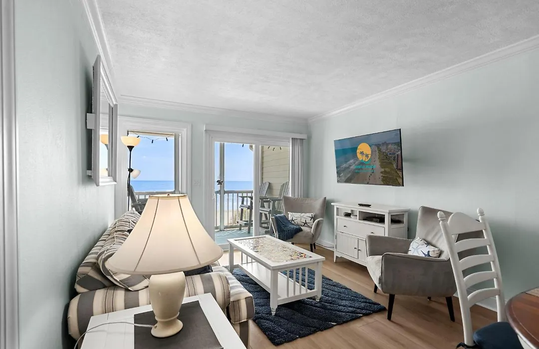 The Myrtle Beach property features seaside views of the sea from a patio.